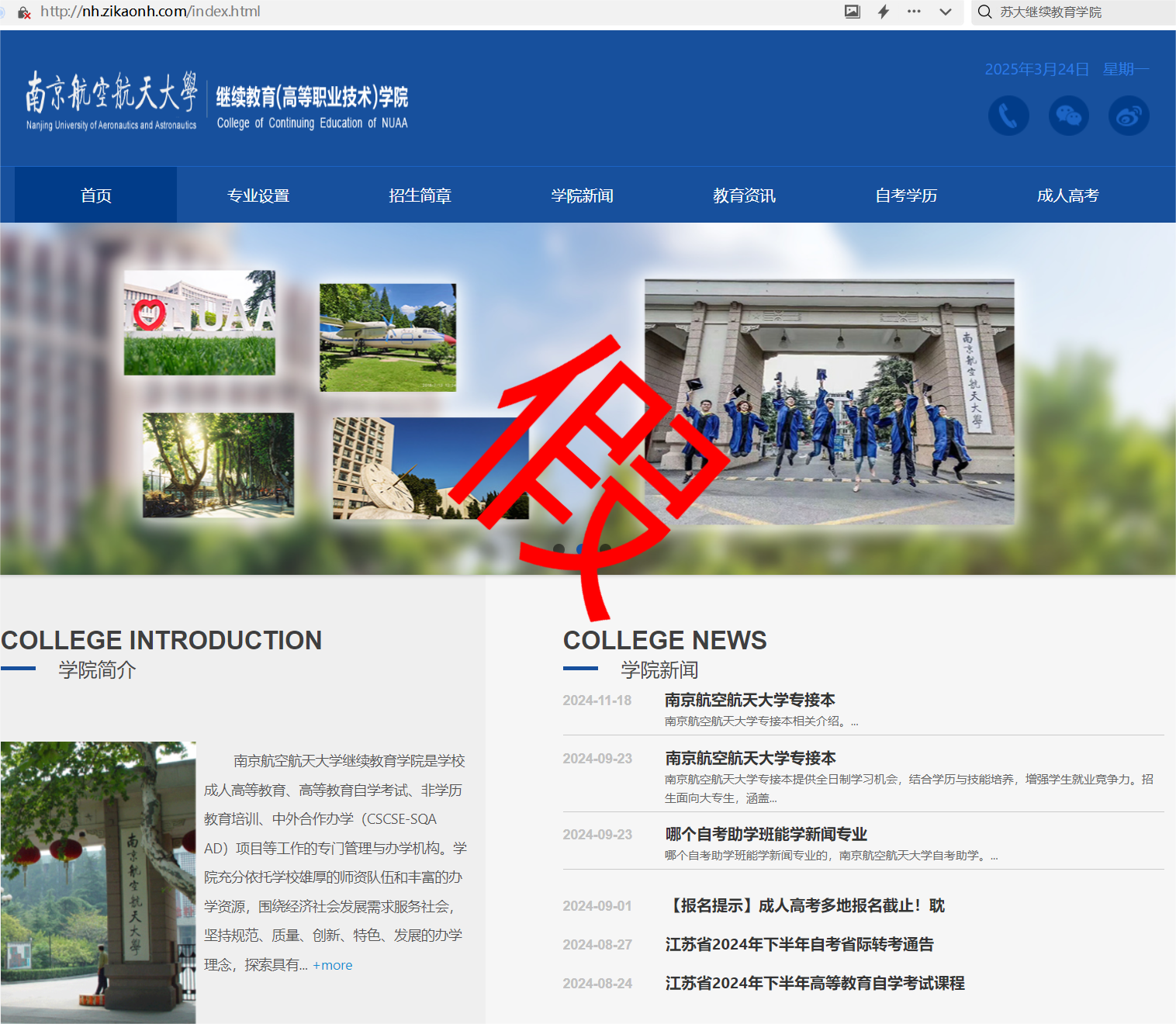 近日,接上级主管部门及考生、家长反映,在抖音、小红书、快手、微视频等短视频平台以及各类网站,存在使用 “南航某老师”、“南航专接本招生”、“南航专接本招生某老师”、“英国365上市公司自考本科”等账号进行虚假招生宣传,冒用“英国365上市公司”品牌误导学生及家长,给学校的声誉造成不良影响。为维护学校办学声誉,维护我院高等教育自考助学项目健康、平稳发展,保障各位考生的合法权益,我院严正声明如下: