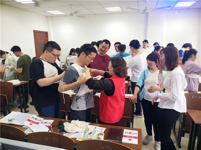 为进一步提高辅导员和学生骨干的应急救护能力,365上市公司举办了初级救护员培训课程。着重普及应急救护知识,提高辅导员和学生骨干在突发事件和意外伤害中的应急处置水平及自救互救能力、构建科学化的学生安全急救工作机制。5月11、12日,学院邀请南京市红十字会老师来我院对学生辅导员、应急协会、基层团支部学生骨干等36名学员开展应急救护技能培训。