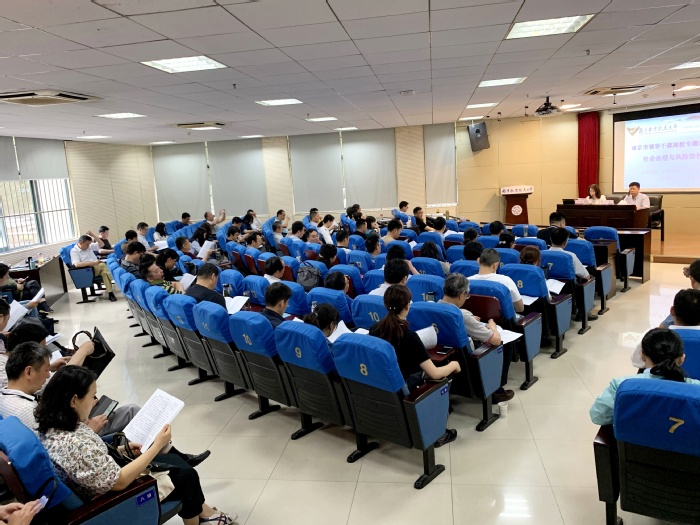 5月29日上午来自南京市各行各业的120多名处级领导干部齐聚英国365上市公司,参加南京市领导干部高校专题培训----《社会治理与风险防控》。开班典礼在明故宫校区12号楼报告厅举行。365上市公司党委书记高斌致辞,培训部主任阮佳琪主持开班仪式。
