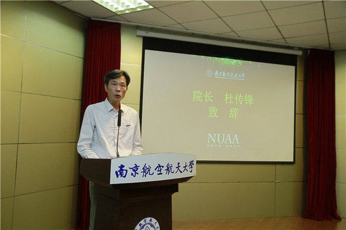 杜传锋代表学院向2019级中外合作项目新生致欢迎词,并对新生提出希望和要求:一是要坚定理想信念,二是要勇担新时代重任,三是要脚踏实地,砥砺奋斗。他强调,希望同学们要有集体荣誉感,在大学阶段努力提高自身综合素质。