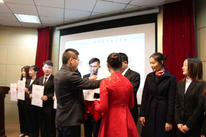 在一段介绍各个宿舍点和关于学生公寓社区自管会情况的开场视频后,主持人2017级环境设计专业李明轩同学宣布“寓你一起 携手共进”学生公寓社区自管会成立大会正式开始。首先由主席团成员武文广同学向大家介绍了学生公寓社区自管会基本情况与组织架构,并提出自管会未来的工作规划和展望。接着分别由李以秀和谢绘老师宣读了学生公寓社区自管会成立文件和主席团任命文件。学生管理办公室主任邓国伟为主席团成员颁发了受聘证书,学院党委副书记张晓燕老师为学生公寓社区自管会进行了授旗。随后,自管会代表王凤英同学上台发言并带领全体成员宣誓,呼吁成员们从自身做起,做好同学们的表率,维护好“同学之家”,做好“师生之桥”,争做有责任,有担当的新时代青年。