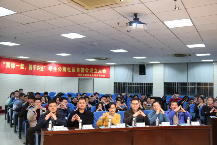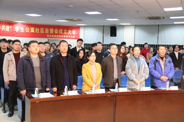 365上市公司“寓你一起 携手共进”学生公寓社区自管会成立大会于12月13日晚18:30在明故宫校区A12号楼报告厅隆重召开。学院党委副书记张晓燕、学生管理办公室主任邓国伟、学管办、团委、中外合作办学、天目湖校区以及各住宿区负责的老师和全体自管会成员参加了成立大会。