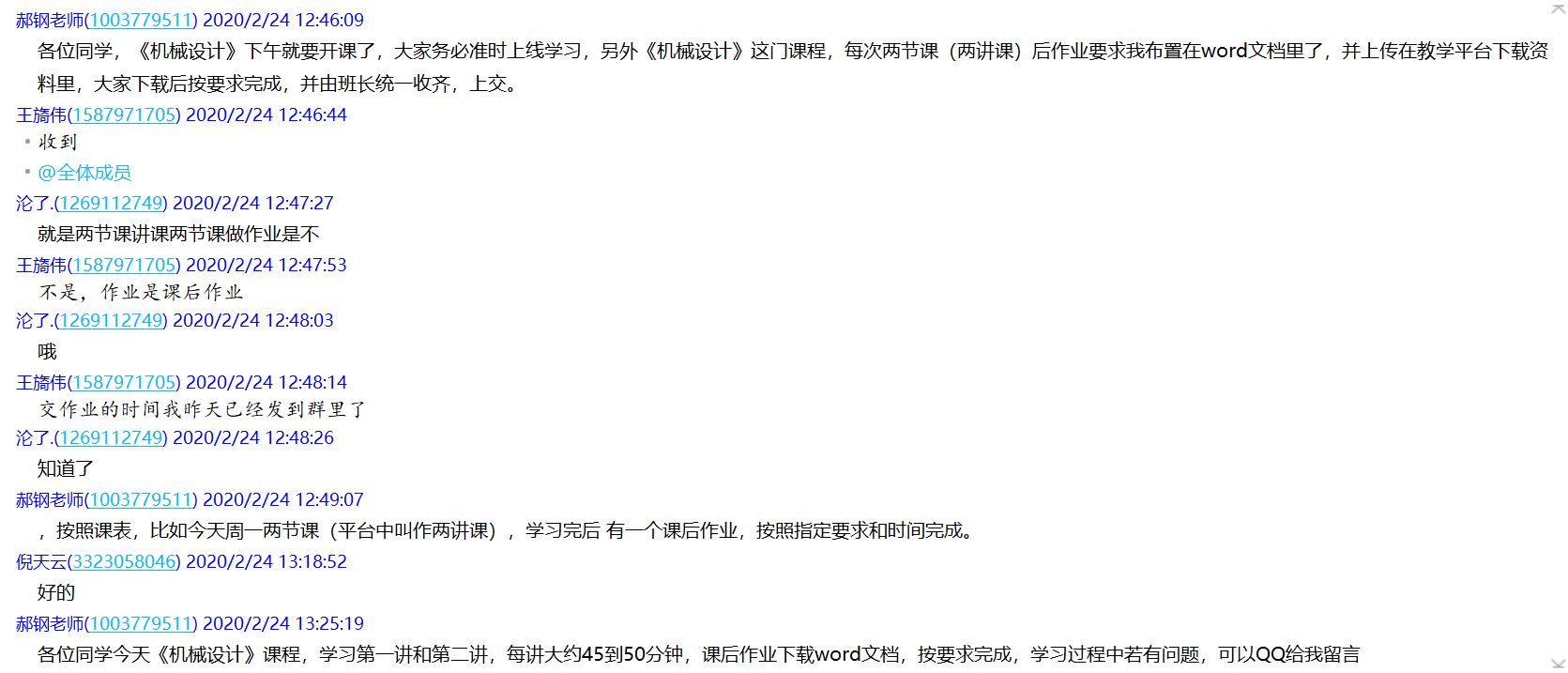 正式开课前,老师在QQ群中提醒学生上课时间,明确学习任务,要求学生课后及时完成作业,确保线上教学和线下教学同质等效。