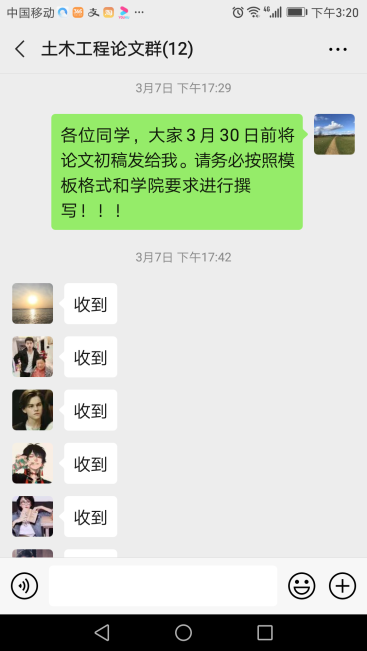 大四学生本学期的主要学习任务是完成毕业设计,在线上课程开课的同时,线上毕业设计指导工作也同步启动。达波老师作为土木工程专业的毕设指导教师,通过微信、QQ等网络平台有效地指导大四同学的毕业设计,目前指导的11名同学均已完成大纲目录,开始正文撰写。通过两周的线上指导,他发现线上指导具有方便快捷,资源丰富,学生互动热烈等优点。