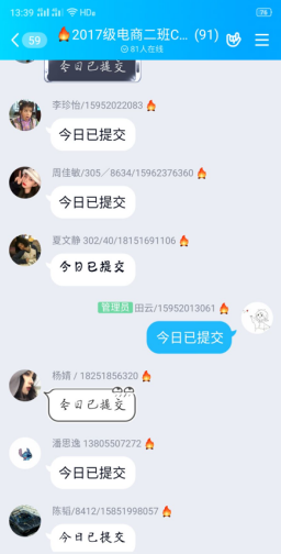 在线上学习过程中,为了身边没有一个同学掉队,学生骨干们通过建立QQ、微信等平台方便老师与同学们更好的交流沟通,将整理好的资料上传,积极监督同学们按时上课打卡,带领班级同学们认真观看教学视频,督促班级其他同学完成各项学习任务,带动整个班级的学习氛围。