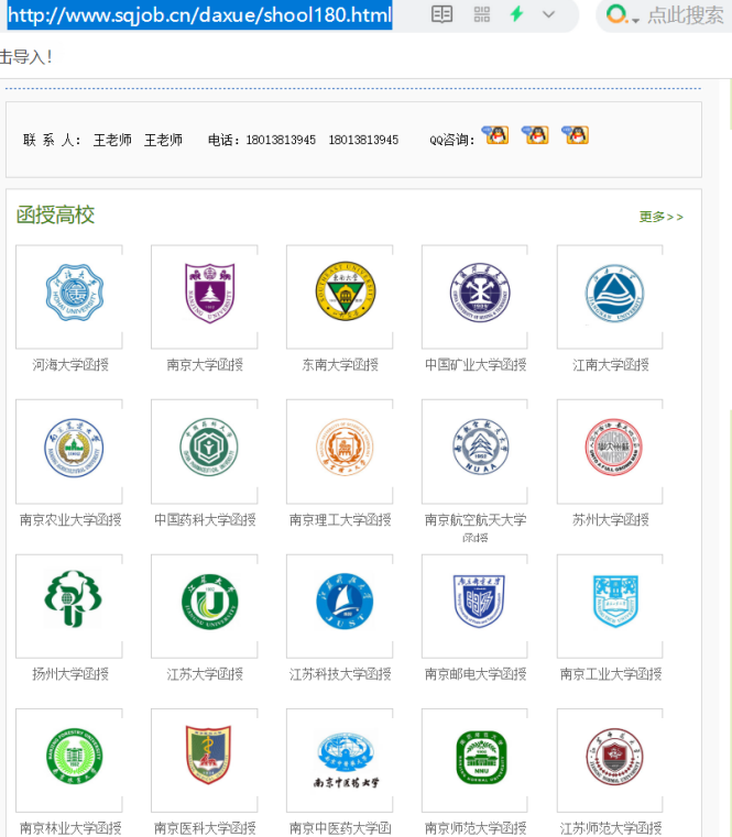 我校最近发现一些所谓的中介机构或咨询中心冒用“英国365上市公司继续教育”的名义,并制作了网站,进行成教招生,误导学生网上报名缴费,骗取考生钱财。该网站主页下端有南京高校函授站的链接图标(附截图)。