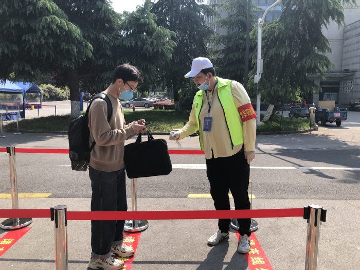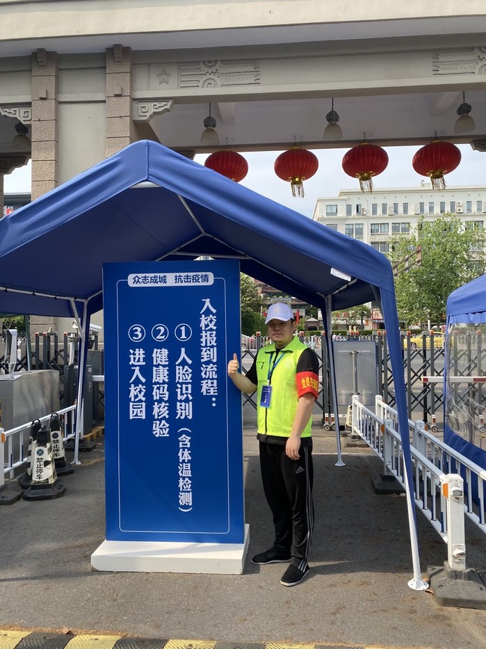 杨彩月:第一批学生返校的日子终于来了,在身份核验、体温检测、健康码核验等工作都井然有序地进行的同时,我能够在这一特殊时期为首批返校的学生提供周到、暖心的服务,很幸福。虽然每天将近在岗七小时,但大家的脸上没有丝毫疲惫,更多的是对同学们返校的热情和期盼,在四月温煦的阳光下,欢迎期盼已久的“家人”到来。