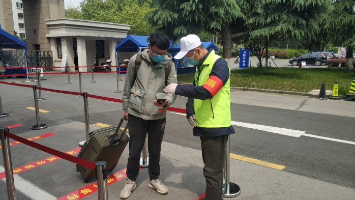 423日上午7时许,志愿者便迅速投入工作状态,连续4天,他们用热情迎接学生返校。从早上7:30到晚上20:00,排班轮岗,每个班次连续工作六个多小时,负责秩序维护、体温检测、健康码核验等工作,经过这几天繁忙而充实的工作,志愿者都有着深刻的感受: