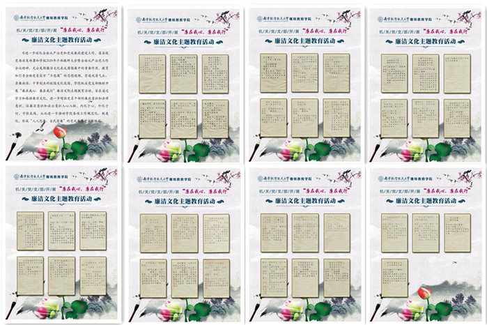 年前经过支委的精心筹备, 征集到支部党员以硬笔书法书写创作的作品共40余幅,内容有廉政诗词、格言、警句,还有关于勤政廉洁的心得感悟。支部希望用一幅幅和谐美观的硬笔作品,一句句意味深长的诗词警句,宣传廉洁廉政文化,为学院干事创业营造风清气正的良好氛围。