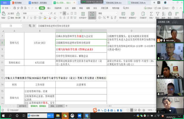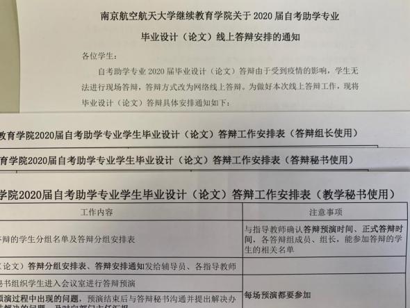 为确保线上答辩顺利进行,在学院副院长赵宇带领下,自学考试部多次召开会议,认真讨论并制定出符合要求的、周密的线上答辩方案,精心设计了答辩工作流程,并按照答辩组长、答辩秘书、教学秘书、学生等不同角色分别制定了答辩安排和注意事项,为此次答辩顺利进行奠定了基础。
