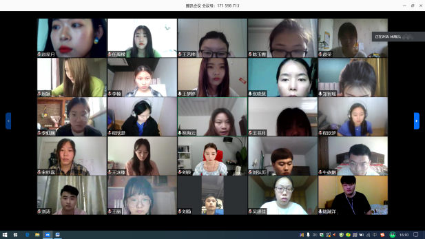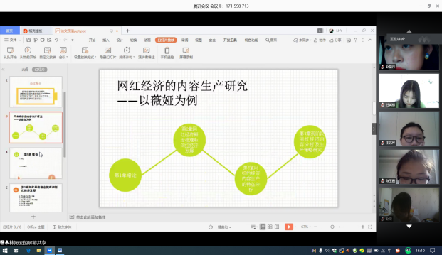 学院根据线上答辩特点,提前对答辩程序进行了优化。答辩开始前30分钟,答辩小组所有学生进入会议室,答辩秘书一一进行身份确认,并向参加答辩学生宣布线上答辩注意事项。答辩正式开始后,各答辩小组学生在“腾讯会议”里依次进行答辩。