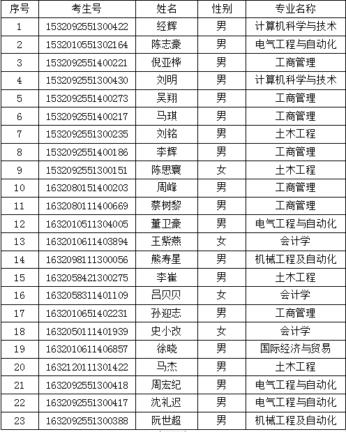 现我院拟对下述学生作取消入学资格处理,名单予以公示(详见下表)。