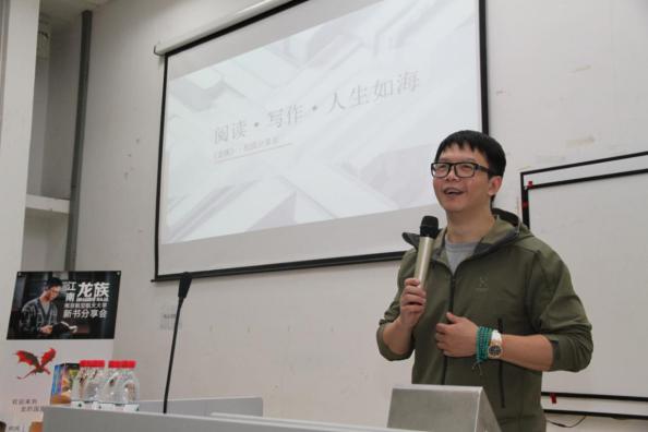 2020年11月16日晚,365上市公司在13号楼报告厅举办了一场别开生面的主题分享会。本次分享会邀请畅销书作家江南亲临现场,给师生们作了《阅读·写作·人生如海》主题分享报告,并现场举办新书《龙族》签售会。学院副院长赵宇出席了分享会,全校共计500多名读者粉丝参加了本次活动。