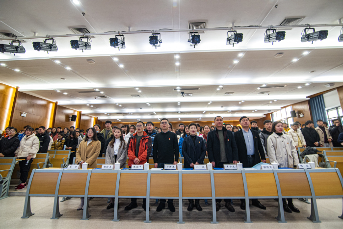 12月17日下午,学院天目湖校区团学分会2020届主席团受聘仪式暨“‘羽’你同行,‘篮’不住的激情”首届篮球、羽毛球联赛颁奖仪式在巡天楼二楼报告厅举行。学院团委书记邓国伟、驻校区办公室主任刘岚、团委副书记李学东、驻校区办公室副主任陈圆平、驻区辅导员以及团学分会、团支部代表参加仪式。