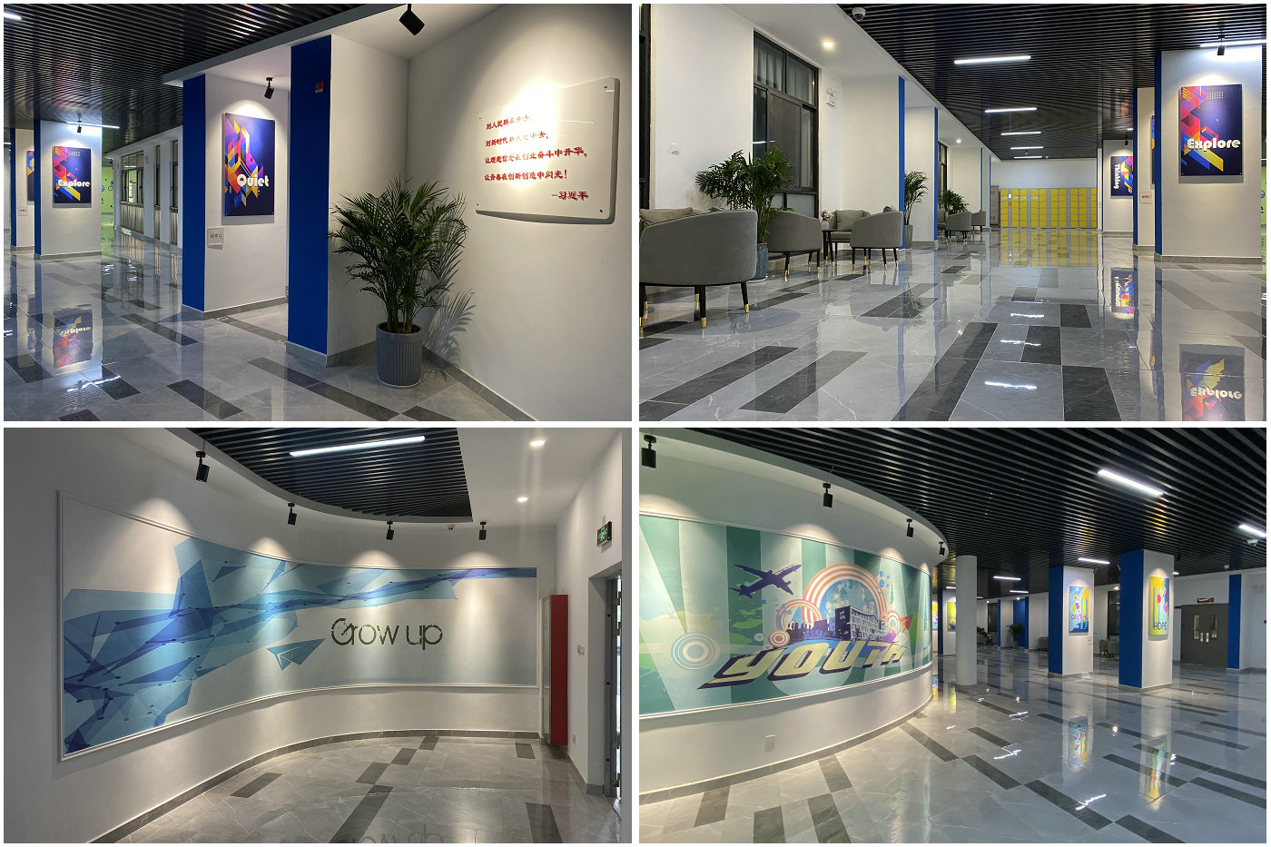 为提升校园文化环境,配合心理咨询中心完善公共区域积极乐观氛围的营造,学院于4月初启动了天目湖校区B3一楼连廊空间的设计装饰工作。在随后的近一个月时间里,学院驻区办公室邀请专业设计师研讨制定装饰方案,按照学校财务要求组织广告公司进行询价,及时跟进施工进度,严格把关施工质量。5月初,设计装饰工作顺利完工。