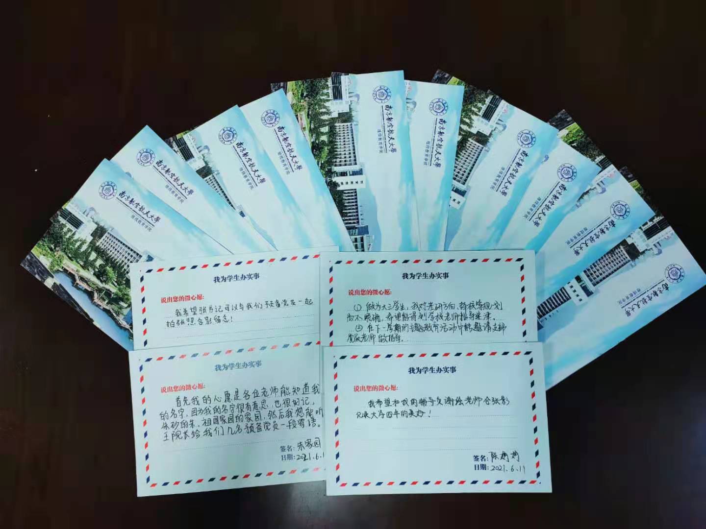 自党史学习教育开展以来,学院把“我为群众办实事”实践活动作为党史学习教育重要内容,用心用力用情为群众办实事,将党史学习教育成果转化为服务群众的生动实践。今天,学院党委委员、党政办主任黄超峰老师、应用技术系吴东华、包智华老师一一念出每位学生的微心愿,并将于近期逐一帮助学生落实。