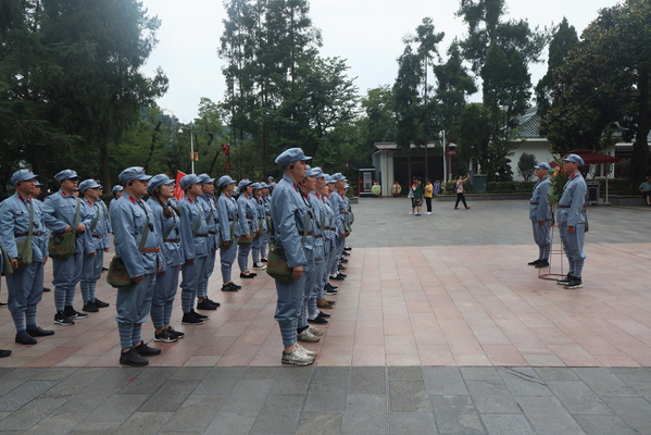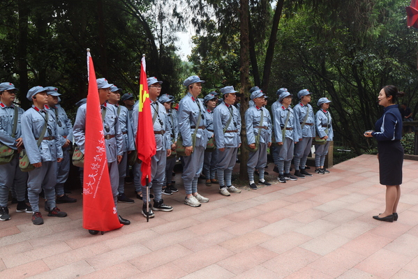 在红军山烈士陵园,党员们身着红军服,通过敬献花篮、鞠躬致敬、瞻仰烈士墓等方式祭奠长眠地下的革命先烈,缅怀他们的丰功伟绩。面对鲜红党旗,全体党员同志一起重温了入党誓词。邓萍烈士、卫生员龙思泉烈士及红军坟的故事,让大家深受感动。