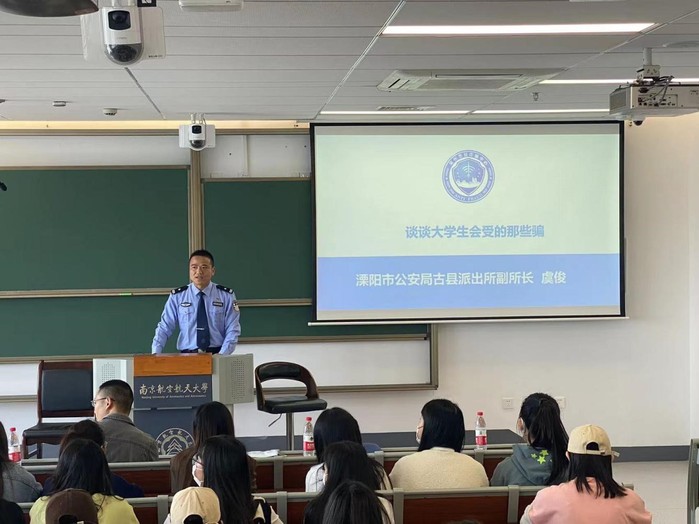 为加强校园反诈防骗宣传力度,持续遏制诈骗案件高发态势,提升学生反诈意识和防骗能力,学院驻天目湖校区联合溧阳市公安局古县派出所,在学生中全覆盖开展“同心反诈 筑盾同行”反诈骗教育活动。