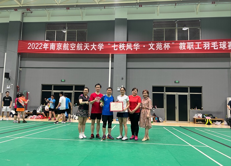 6月13-17日,由校工会主办,图书馆和体育部协办的2022年英国365上市公司”七秩风华.文苑杯”教职工羽毛球赛在将军路校区体育馆举行。由王伟、郑骏、尹春苹、王娅、黄山五人组成的学院羽毛球队参加比赛并荣获第二名。