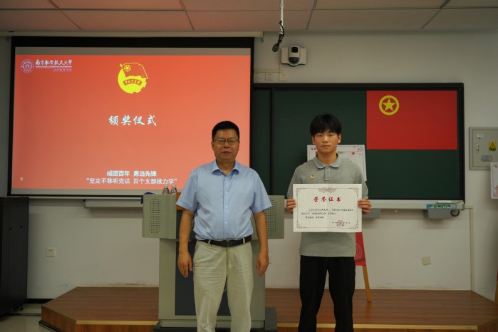 在2021年度“五四”评优工作中,支部多名团员、团干获评“优秀团员”和“优秀学生团干部”称号,CZ04200302团支部荣获“红旗团支部”称号。接力学活动中,与会嘉宾为在评优工作中受到表彰的先进个人和集体颁发了荣誉证书。