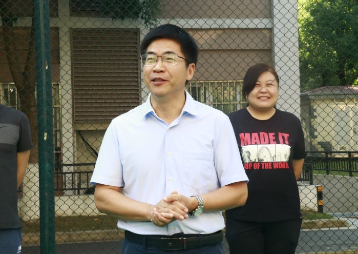 盛世华诞,举国同庆。为充实学生国庆假期的学习生活,进一步畅通学院与学生沟通的桥梁,以实际行动庆祝中华人民共和国成立73周年,102日上午,学院团委在校外苏宁公寓宿舍区开展“‘留’下温暖,‘守’望幸福”主题团日活动——篮球友谊赛,院长王伟、院党委副书记尹春苹、院团委书记邓国伟以及学院团委老师、相关辅导员来到活动现场,关心在校学生,与新生同乐。