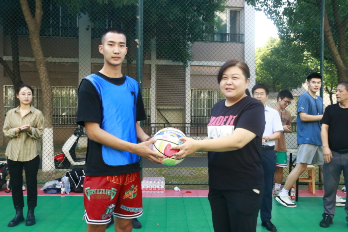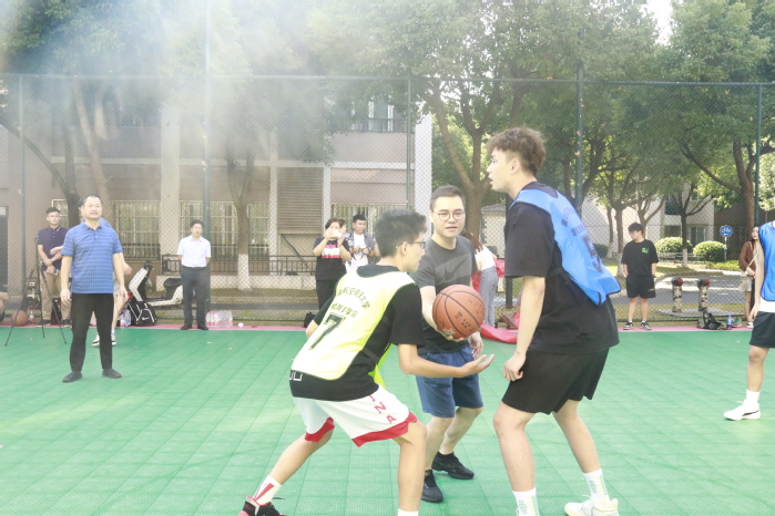 随着裁判员一记哨声,比赛正式开始。邓国伟老师为运动员代表开球,运动员迎“篮”而上,你争我夺、你攻我守,丝毫不放过每一次进攻机会。赛场上,大家相互竞争,拼技术、比体力,精彩的抢断、默契的传球、精准的投篮,比赛精彩纷呈,让观战的啦啦队热血沸腾,连胜高呼“好球”“漂亮”;赛场下,大家相互学习,切磋球技。既为我们呈现了一场场精彩激烈的比赛,同时也赛出了风格,赛出了水平,赛出了友谊。