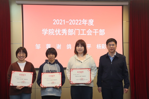 会上,学院领导为获得“2022年度优秀部门工会干部和工会活动积极分子”的教职工进行了颁奖。