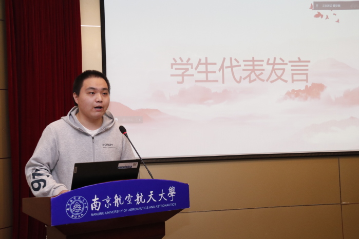 2021级软件工程刘子豪同学代表2024届考研学生发言,他从考研心理准备、专业与院校选择、研考复习准备等方面分享了思考与体会,他号召同学们,要平衡好考研和当前学业的关系,扎实学好本科段专业知识,树立合理的考研目标,并能够坚定信念,付诸行动。