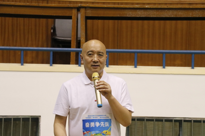 院党委书记刘建成在致辞中讲到:希望全体师生能够通过运动塑造强健的体魄、保持愉悦的心情,每天都能以朝气蓬勃的状态去学习和工作、迎接挑战。在运动中增强师生情感交流,保持青春的风采和青春的心态,师生们共同成长。院长王伟宣布师生本次师生趣味运动会正式开始!