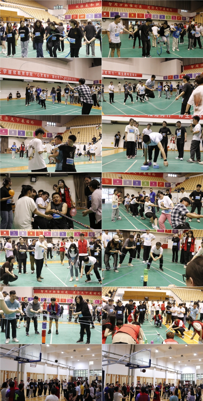 激情四射的热身活动将场馆火热点燃,随后裁判一声令下,各支队伍齐心协力、斗志昂扬,每位参赛选手都热情高涨、你追我赶,展现出一幅幅进取、拼搏、团结、友爱的和谐画面。一旁观战队员的加油声呐喊声也响彻整个场馆,不断把运动会的气氛推向高潮。学院领导也走上赛场,与大家同台竞技,展现出继教人蓬勃朝气的精神风貌和拼搏向上的体育热情。