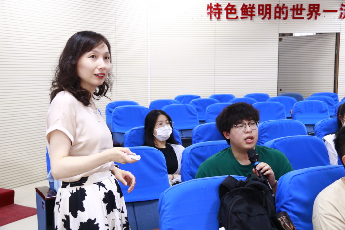 讲座中,陈瑜老师以“朋辈心理互助技术”作为切入点,为在场的学生骨干分析了学生干部在学生心理健康方面的重要作用,从基本要求、职责定位、沟通技巧、如何发挥作用方面,通过场景模拟、互动问答等方式,深入浅出地为同学们讲解了在朋辈心理互助方面的知识和方法。