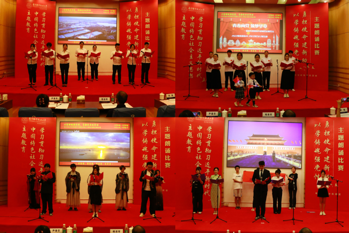比赛环节结束后,学院机关党员、教师党员、学生党员代表为大家带来《青年成长与发展》主题朗诵,现场气氛热烈、掌声迭起,展示了学院师生从游、教学相长的学习成长氛围和师生同频共振、同题共答的责任担当。