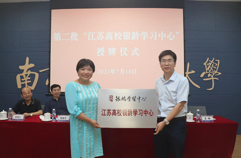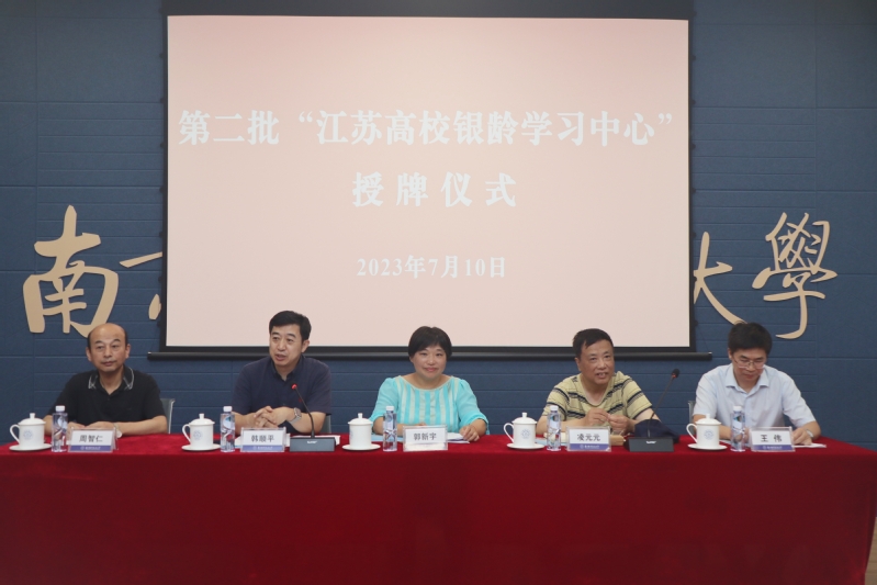 7月10日,第二批“江苏高校银龄学习中心”(简称“银龄中心”)授牌仪式在我校举行。省教育厅高教处二级调研员郭新宇出席活动,江苏高校银龄学习中心建设指导委员会主任凌元元、江苏省高教学会高校成人教育研究会部分理事长、部分高校365上市公司、江苏高校银龄学习中心建设指导委员会成员等60余人参加了授牌仪式。仪式由江苏省高教学会高校成人教育研究会理事长、南京大学终身教育学院院长韩顺平主持。
