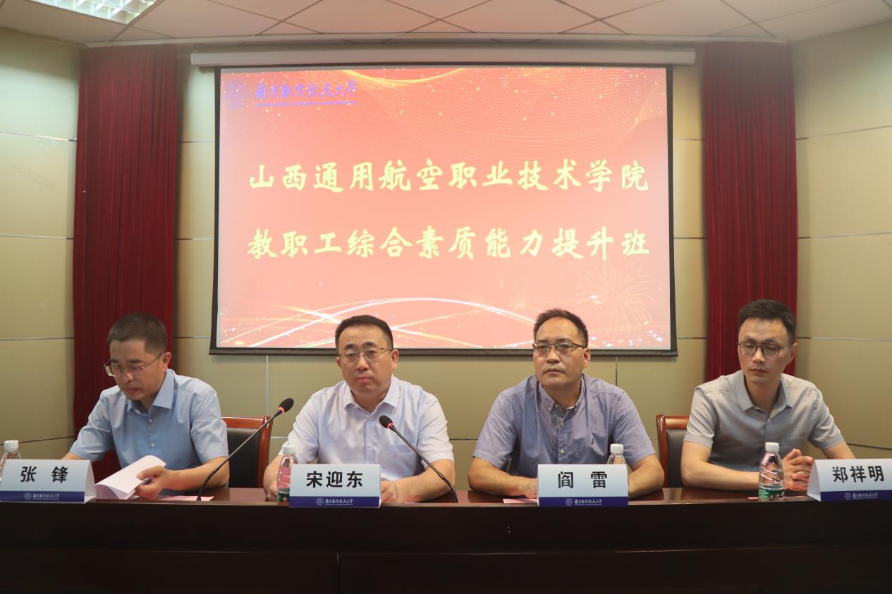 7月12日上午,山西通用航空职业技术学院教职工综合素质能力提升班在我校顺利开班,100名山西通用航空职业技术学院教职工代表参加了本次培训。我校党委常委、副校长宋迎东、山西通用航空职业技术学院院长阎雷出席,开班仪式由山西通用航空职业技术学院党委常委、副院长张锋主持。