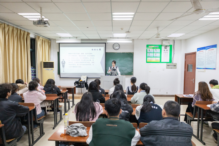 分享会伊始,曹老师引经据典,简要阐述了礼仪的由来,引导学生深刻理解礼仪的含义与基本形式。她围绕“仪容仪表、仪态礼仪、商务礼仪、日常礼仪”四个方面与同学们进行了深入的交流,她结合男/女士发型要求、妆容要求、妆容难点等方面进行了重点分享。她认为,无论是在校园内还是在未来的求职就业中,良好的礼仪习惯都能够给人留下深刻的印象。接着,她还邀请了几组同学通过情景演绎的方式介绍了蹲姿、站姿、走姿、坐姿、问候礼、握手礼、鞠躬礼等实用的礼仪技巧,讲授了礼仪规范的关键细节,同学们积极互动,争相提问,氛围活跃。最后,曹老师还勉励同学们要通过学习和实践礼仪,加强内在的修养和素质,不断培养自己的自信心、沟通能力和人际关系处理能力,为今后的职业发展打下坚实的基础。