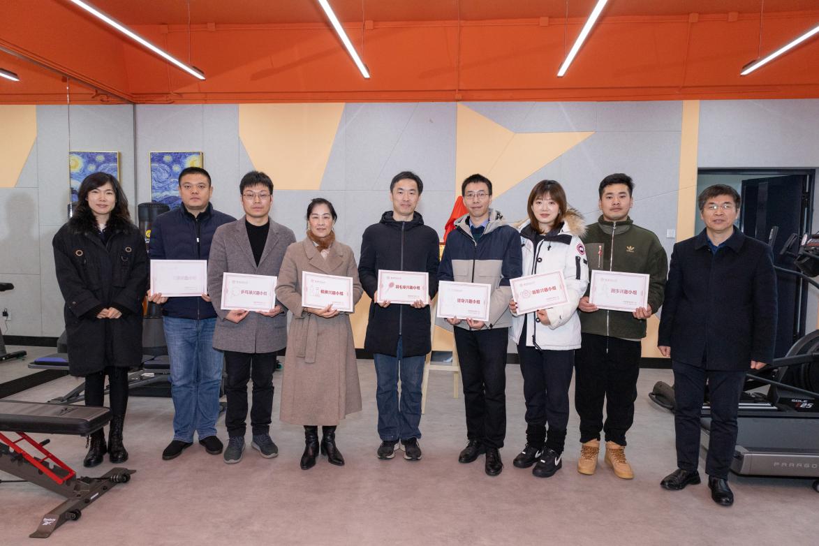 王伟为学院工会下设的篮球、乒乓球、羽毛球、棋牌、跑步、健身、摄影7个兴趣小组授牌
