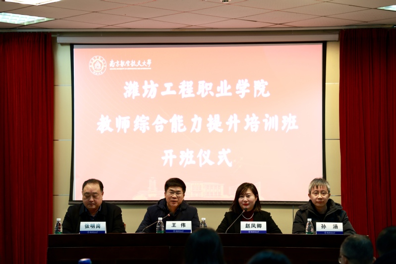 开班仪式上,王伟对参训教师表示热烈欢迎,简要介绍了南航的基本情况,希望通过此次培训能够促进两校沟通,助力潍坊工程职业学院稳健发展。赵凤卿对南航的组织与安排表示感谢,并要求全体教师要沉下心来,专心学习;加强沟通交流,形成心齐劲足、合力攻坚、推动学院高质量发展的强大合力。