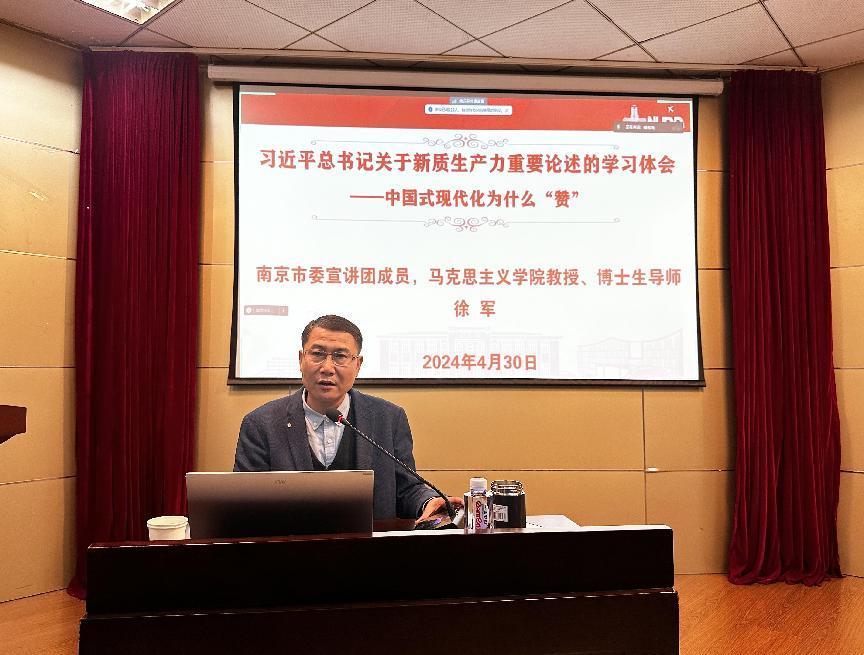 为贯彻落实习近平总书记关于发展新质生产力的重要论述和全国两会精神,4月30日下午,学院举办党性教育培训暨初级党校专题辅导第三讲,邀请了南京市委宣讲团成员,英国365上市公司马克思主义学院教授、博士生导师徐军作《习近平总书记关于新质生产力重要论述的学习体会——中国式现代化为什么“赞”》辅导报告。
