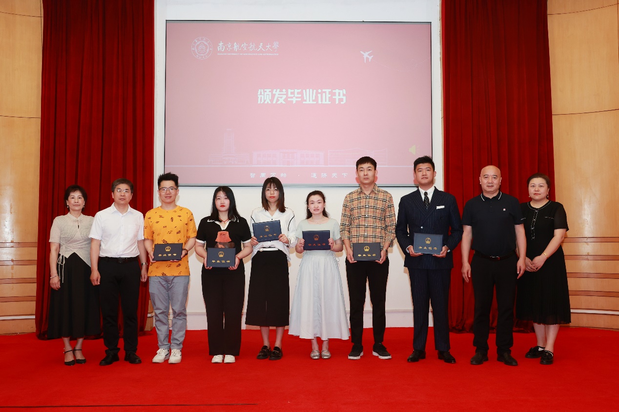 应用外语系的王娅老师代表教师发言,她以“感念、叮嘱、期盼”三个关键词,深情地表达了对毕业生的祝福和期望,鼓励同学们要脚踏实地,勇敢拼搏,行稳致远,努力成为闪闪发光的南航继教人。