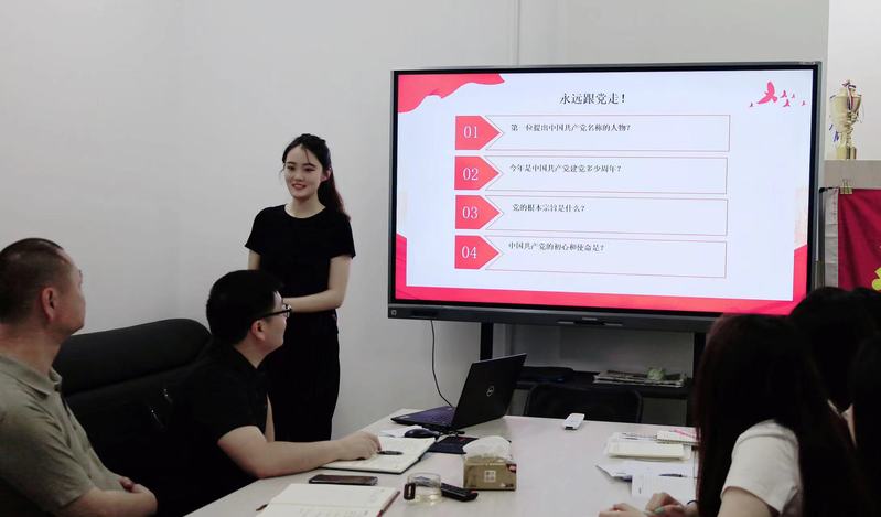 党史知识竞答环节学生党员张钰同志带领大家开展了党史知识竞答比赛,通过互动参与竞赛答题的方式,融趣味性、教育性、实用性为一体,让大家在轻松活泼的氛围中学习了党史知识,让党史知识深入人心。