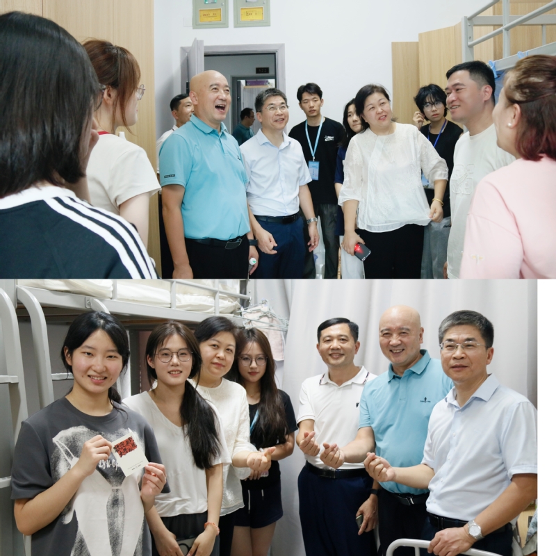 报到结束后,院领导还深入学生公寓看望新生及家长,倾听意见建议并与他们进行了热情交流,其中来自河南的新生家长在交谈过程中高兴地说:“我们自驾8个小时过来,没想到一到校就感受到了拳拳关怀,院领导能第一时间来看望关心孩子们的入住情况,感到很惊喜,刚才我们去商超买洗漱用品也很方便,吃的、喝的、用的等等设施一应俱全,把孩子送到这样的学校我们很放心”。院领导在交流中鼓励同学们,要早做大学规划,多与老师们交流、多与家长汇报在校学习生活情况,尽早树立学习目标,笃学实干,尽快转变角色,适应新的学习生活环境。