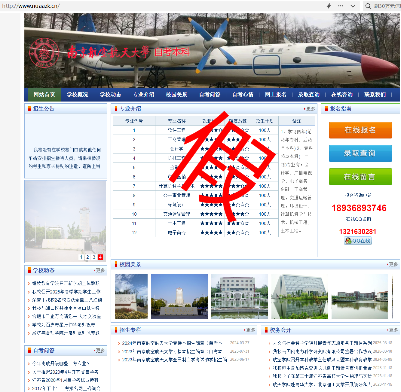 近日,接上级主管部门及考生、家长反映,在抖音、小红书、快手、微视频等短视频平台以及各类网站,存在使用 “南航某老师”、“南航专接本招生”、“南航专接本招生某老师”、“英国365上市公司自考本科”等账号进行虚假招生宣传,冒用“英国365上市公司”品牌误导学生及家长,给学校的声誉造成不良影响。为维护学校办学声誉,维护我院高等教育自考助学项目健康、平稳发展,保障各位考生的合法权益,我院严正声明如下:
