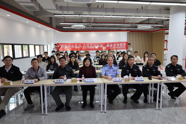 在第十个全民国家安全教育日到来之际,学院天目湖校区创新打造"沉浸式"安全教育场景,于4月15日下午在"一站式"学生社区B8-115室举办“树牢安全意识,共筑平安校园 ”国家安全教育日专题教育活动。溧阳市公安局治安警察大队内保中队长韩强、古县派出所副所长周立群、治安警察大队警官管卫彬、驻校警务室负责人史筱瑜以及365上市公司党委副书记尹春苹、保卫处驻天目湖校区保卫办主任黄耀龙、365上市公司学生管理办公室负责人陈晨等参加活动,深入探讨国家安全与校园安全的融合实践。