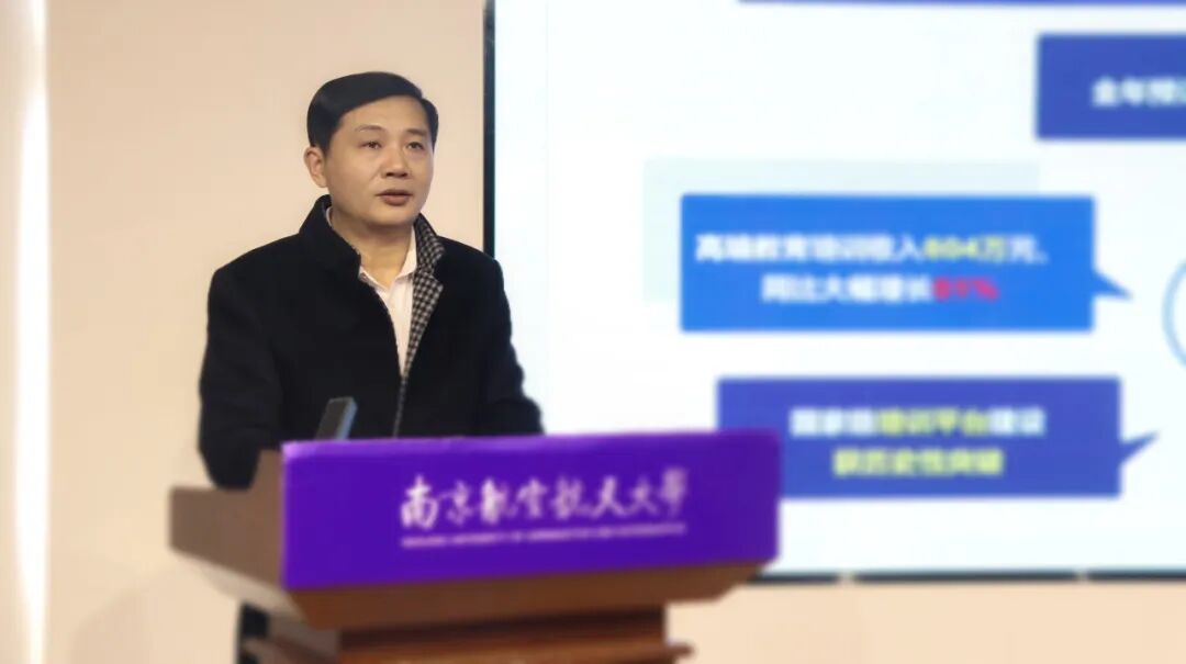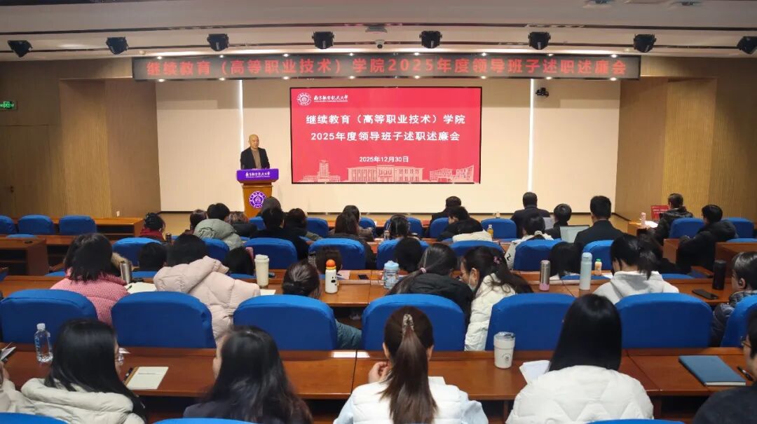 院长江爱华代表领导班子作学院年度工作总结并作个人述职述廉报告。他指出,学院领导班子紧紧围绕学校中心工作,以党建引领发展,以改革推动转型。2025年度,学院领导班子聚焦主责主业,在顶层设计与治理改革、学历继续教育提质增效、高等教育自学考试降本转型、高端培训实现跨越式增长、国际合作教育稳中有进等方面取得阶段性成效。面向未来,学院领导班子将以过硬作风凝聚发展合力,以高质量党建引领保障高质量发展,以“十年行动计划”为指引,持续深化改革、加强协同创新、提升服务效能,稳步开创可持续、高质量发展的新局面。